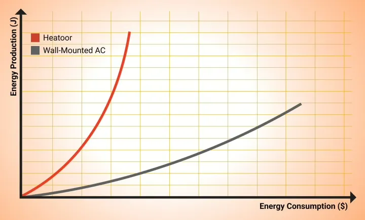 40% less electricity than standard space heaters. Independent lab tests show Heatoor can raise a room’s temperature by